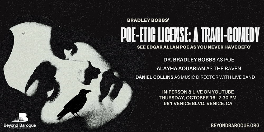 Beyond Baroque presents an Edgar Allen Poe-inspired variety show full of 19th century American gothic and tragicomedy, starring Dr. Bradley Bobbs! Cast includes Alayah Aquarian as The Raven and live band performance led by Musical Director Daniel Collins.