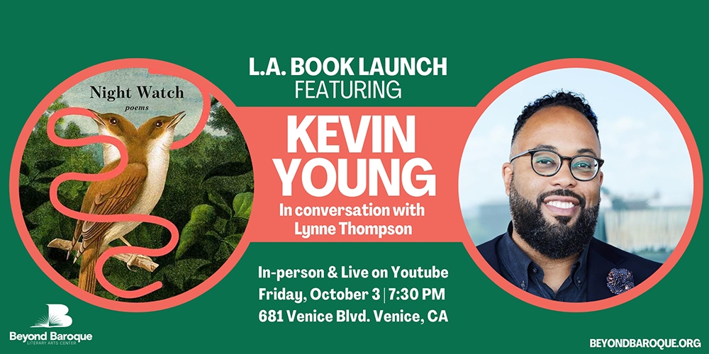 Beyond Baroque welcomes Kevin Young, Poetry Editor of The New Yorker and host of The Poetry Podcast. Join us for an evening of poetry in The Wanda Coleman Theater at Beyond Baroque celebrating the release of his most recent collection, Night Watch (Knopf, 2025) followed by a reception and book signing. Night Watch is a book of personal and American experiences, both beautiful and troubling, touching on the generative cycle of loss and renewal.