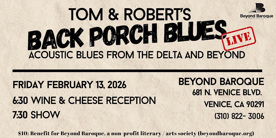 Friday, February 13, 7:30 PM PT In Person at Beyond Baroque and Live on YouTube